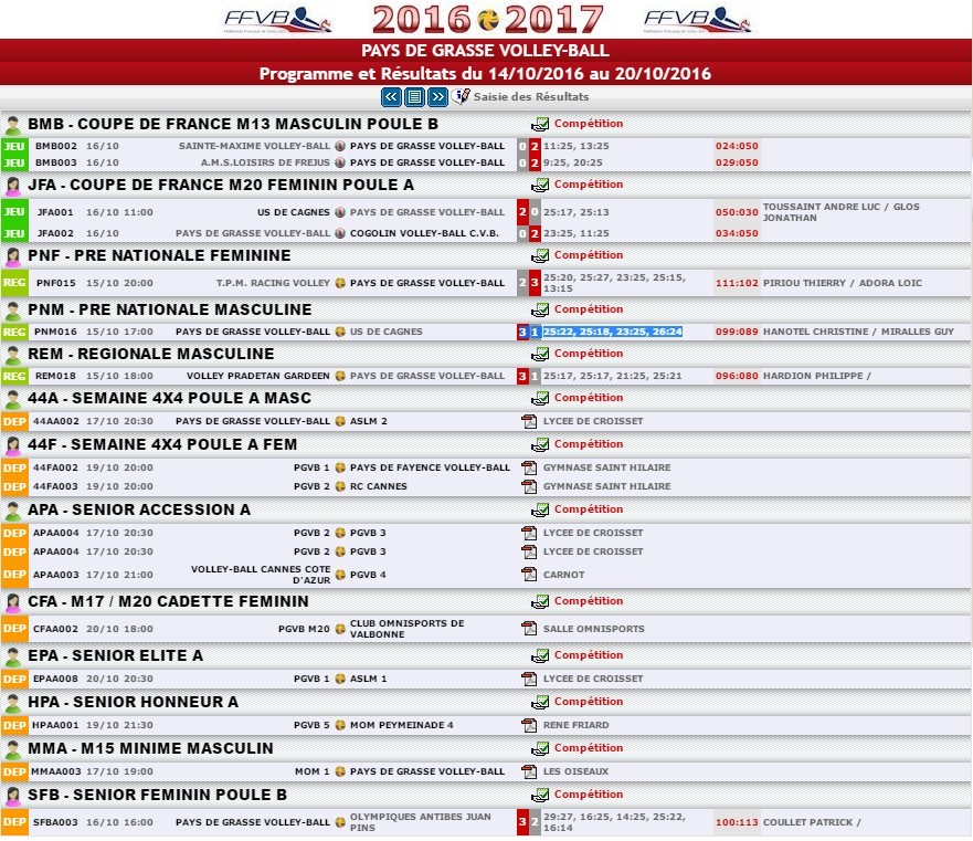 Et ci-dessous les prochains match !!