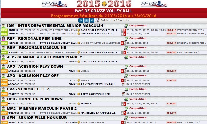 Pour ce week-end de Pâques, nous avons eu droit a de beaux résultats : victoire chez les départ garçons contre Antibes (25:22, 20:25, 22:25, 28:26, 13:15) même si une défaite ici contre Ollioules a été enregistrée ensuite...