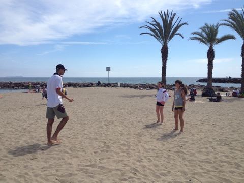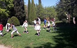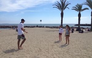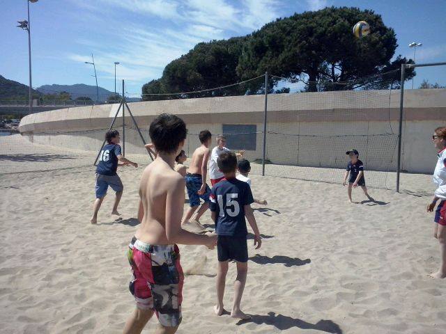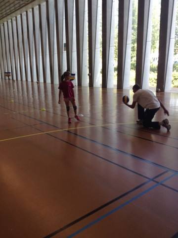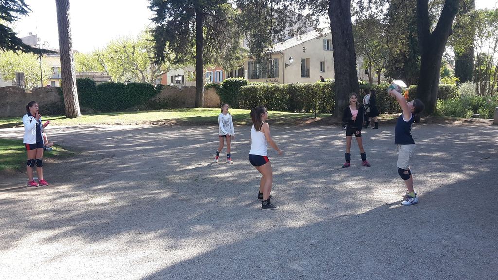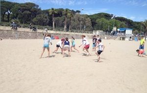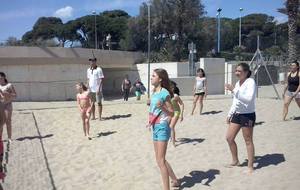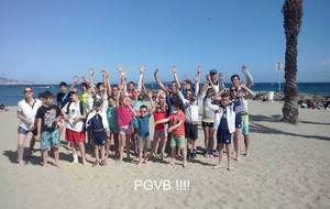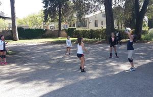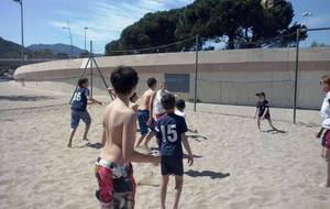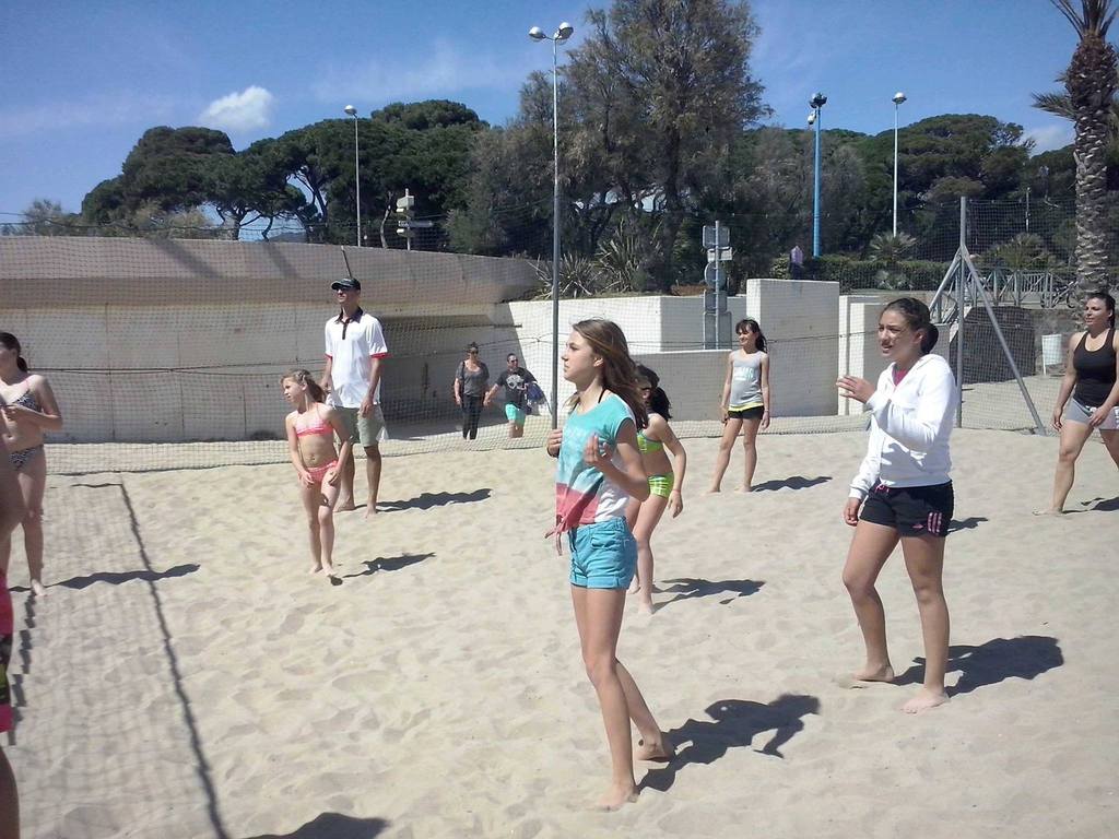 Retour sur notre stage de Pâques: de 22 à 25 enfants de 6 à 13 ans durant ces 4 journées. Après les 2 premières matinées consacrées au travail sur les fondamentaux et la sortie cinéma de mercredi après midi, jeudi matin le travail était accès sur la continuité autour de 3 ateliers différents. Vendredi matin, nous avons eu l'intervention de Sophie, professeur de danse, sur l'échauffement, le renforcement musculaire (adapté aux enfants bien sûr !!) et un exercice de "repère dans l'espace". Ensuite place au jeu, avec des matchs en 3x3, 2x2 et 1x1 selon les niveaux et les âges. Et pour clore ce stage, direction Mandelieu pour une après midi à la plage !!! Beach-volley, taureau, vortex, bronzette, bonne humeur...Encore une belle journée de travail, de partage et de rigolade !!!!! Merci aux éducateurs pour leur disponibilité (Claire, Pascal, Indiana, Danièle, Sophie), merci aux parents accompagnateurs (mention ++ pour Nathalie !) et merci aux enfants pour leur investissement et leur bonheur partagé !!