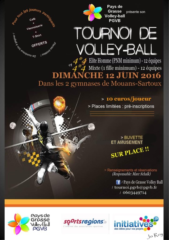 Le PGVB organise son tournoi de volley-ball le dimanche 12 juin 2016 ! Pour tout renseignement, 06 03 44 97 14 ou tournoi.pgvb@pgvb.fr