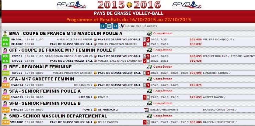 En ce qui concerne les cadettes, c'est le week-end parfait : victoire en championnat samedi 3 sets à 0 sur le RC Cannes (25-17 / 25-14 / 25-14) et dimanche victorieuses et sélectionnées pour le second tour de coupe de France, résultats : 2-0 contre Draguignan (25-14 / 28-26) puis 2-0 contre Saint Laurent (25-23 / 25-15) ! Bravo les filles !