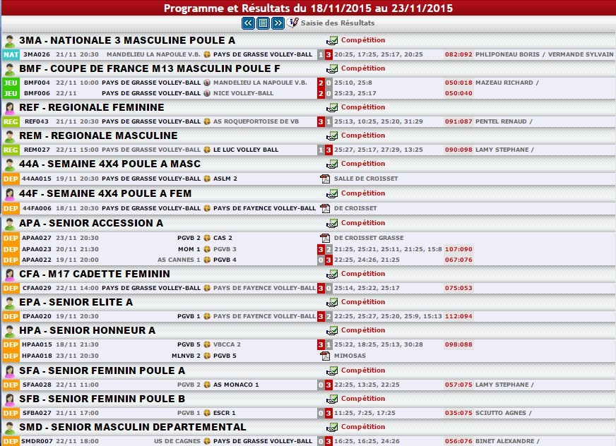 Victoire des N3 à Mandelieu 3 sets à 1 (20:25, 17:25, 25:17, 20:25). On arrive en 3ème place du classement...