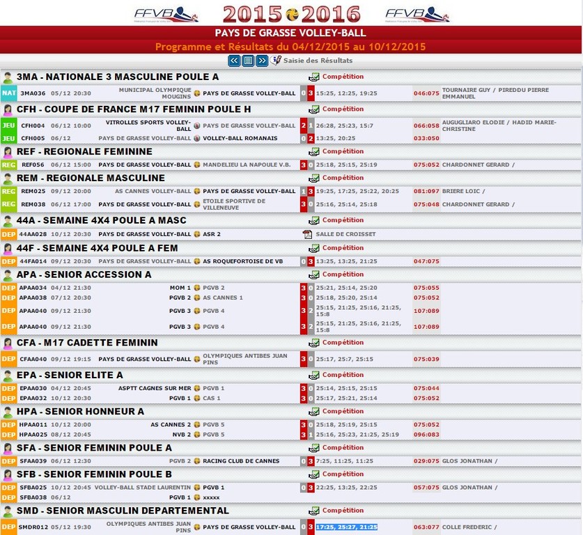 Les régio garçons qui gagnet 3 / 0 contre Villeneuve-Louvet le dimanche (25:16, 25:14, 25:18) puis 3 / 1 le mercredi contre Cannes (19:25, 17:25, 25:22, 20:25)