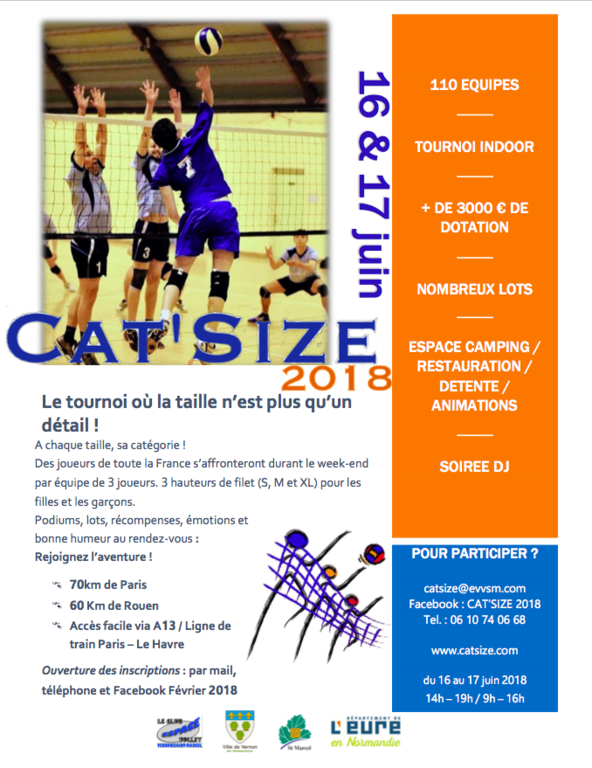 L'Espace Volley de Vernon / Saint-Marcel (dans l'Eure) a le plaisir de vous annoncer le retour du Tournoi Cat'Size !