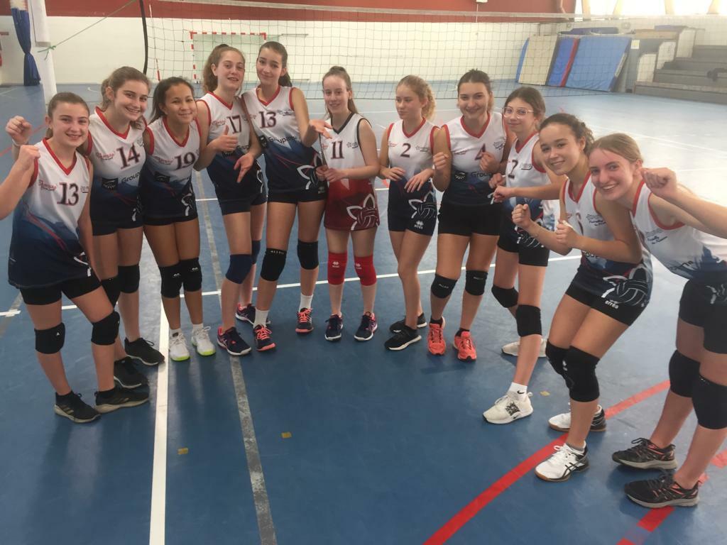 2022 commence bien pour notre équipe M15 féminine. Une victoire nette 0-3 à St-Laurent du Var (12-25/08-25/15-25). Nous continuons de progresser dans la mise en place de notre jeu, sur ce match on a vu l’amélioration de notre système défensif. Et au service certaines joueuses commencent à servir sauté flottant, d’autres sont passées du service par en dessous au service frappé au-dessus de la tête. Certaines joueuses ont effectué leur tout premier match aujourd’hui et se sont bien débrouillées. Nous étions 11 dont 6 joueuses qui ont débuté en septembre et nous sommes en capacité de faire jouer tout le monde en maintenant un bon niveau de jeu et avec une super ambiance d’équipe.