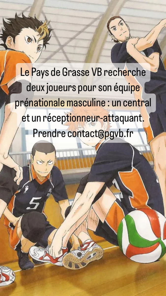 Le Pays de Grasse VB recherche deux joueurs pour son équipe prénationale masculine : un central et un réceptionneur-attaquant. Prendre contact@pgvb.fr