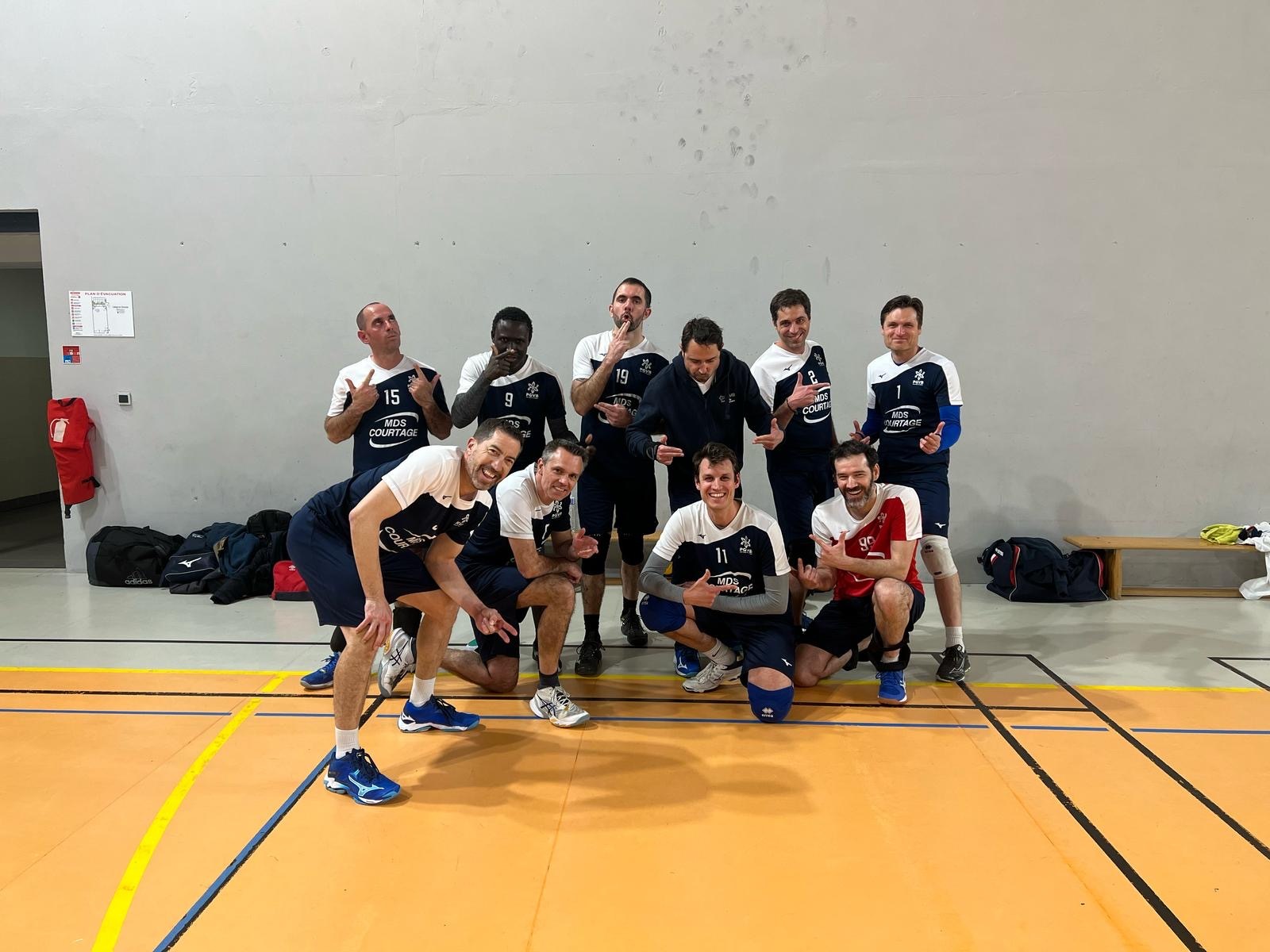 Pour le premier match de la poule finale, nous affrontions Mandelieu. Et comme toujours, ce match marathon fut une rude bataille. Nos adversaires entament le match bien mieux que nous, mettent à mal notre réception avec de bons services et s'emparent logiquement du premier set. Mais des le début du second set, le PGVB est bien mieux en place dans tous les compartiments du jeu, et gagne les 2 sets suivants contre un Mandelieu poussé à la faute. Au 4e, nos adversaires retrouvent leur jeu et font un 4eme set quasi parfait, malgré une combativité toujours présentes, nous nous inclinons assez largement dans le 4e.Le 5e set sera au final le plus équilibre, les équipes se rendent les coups et Mandelieu bascule devant a 14-12. Mais une incroyable fin de set nous permet d'enchainer 4 points et de retourner ce match, 3-2 , Allez PGVB !